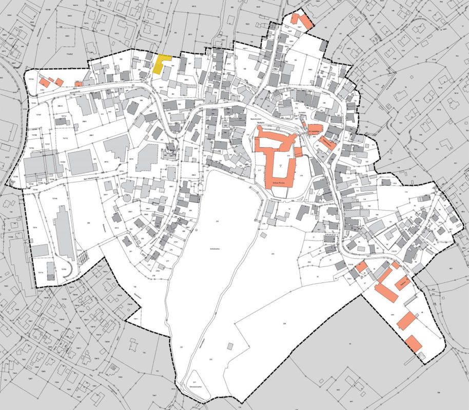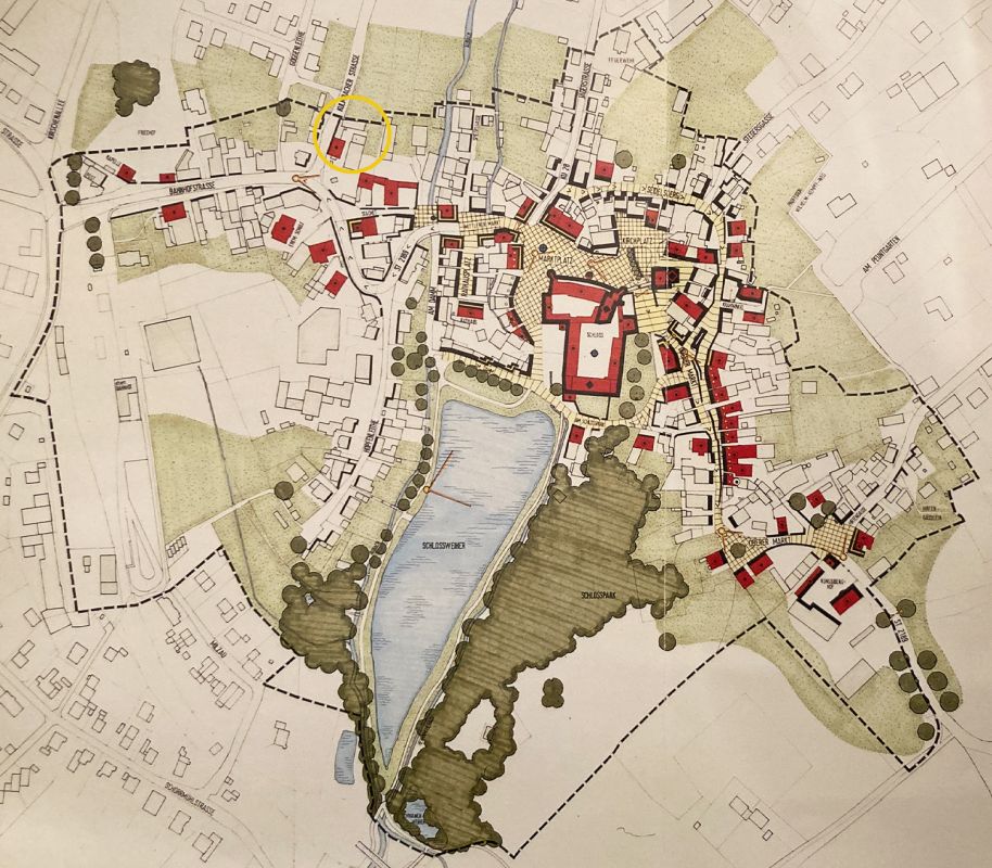 Demnach ist der ehemalige Gasthof zum weißen Schwanen im Geltungsbereich des kommunalen Förderprogramms. Die gleiche Grenze ist bereits in den Voruntersuchungen von 1987/89 enthalten.