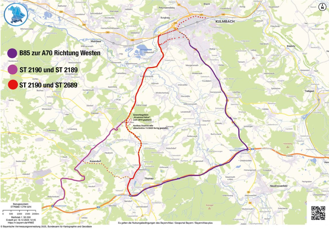 Zwischen Kulmbach und der A70 bestehen mehrere Verkehrsverbindungen. Neben der B85 im Osten und der Route über Kasendorf im Westen gewinnt die Route über Krumme Fohre und Thurnau (St 2190/St 2689) zunehmend an Bedeutung. Durch den im November 2025 abgeschlossenen Ausbau der Trasse St 2190/St 2689 bei Krumme Fohre und um Döllnitz herum wurden bisherige Engstellen beseitigt. Damit wird sie attraktiver für den Schwerlastverkehr aus den westlich von Kulmbach gelegenen Industriegebieten. Wird außerdem das Gewerbegebiet "Krumme Fohre" an dieser Trasse gebaut, ist mit weiterem Verkehr zu rechnen.